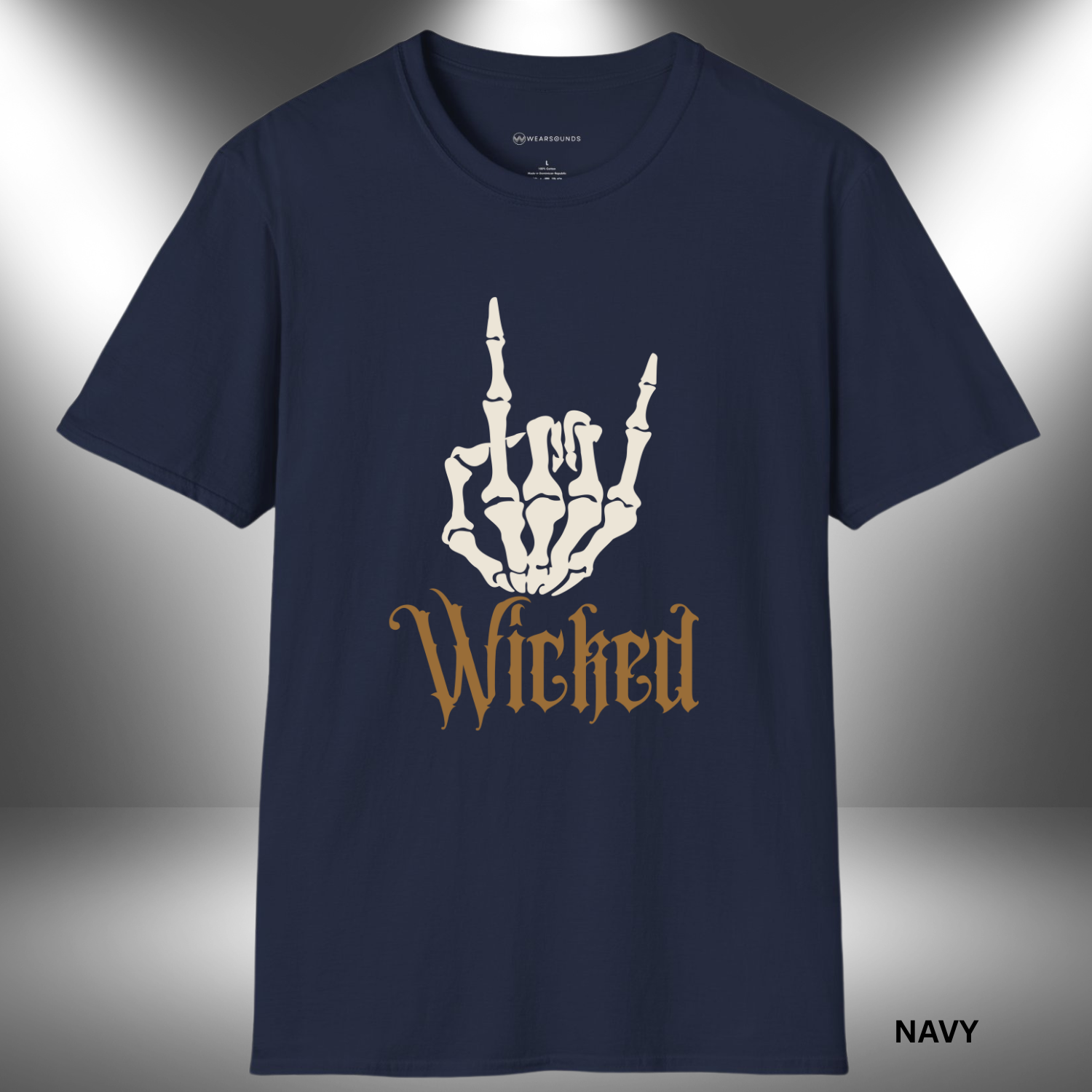 Turn up the volume on spooky season with the Wicked Halloween T-Shirt! Featuring a skeleton hand throwing up the iconic rock horns, this tee is perfect for metalheads, rock fans, and anyone who loves their Halloween with a little extra edge. A bold design with gothic flair, ready to haunt the stage or the streets.